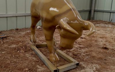 首先在泡沫或泥塑外分割、噴涂隔離劑制作石膏模具;模具凝固后卸下并清理、精修模具;然后刷樹脂膠、貼纖維布開始制作雕塑局部;待各個部分都制作好后拼裝到一起;最后打磨后進行表面著色處理、噴涂清漆即可。